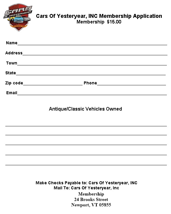 **CARS OF YESTERYEAR, INC. OR IT'S LEGAL MEMBERSHIP WILL NOT BE HELD LIABLE FOR ANY INJURIES ,OR DAMAGES INCURRED DURING ANY EVENTS SPONSORED BY CARS OF YESTERYEAR INC.*